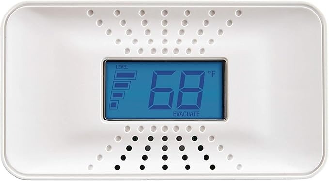 Digital display shows CO levels.10-year battery for reliability.